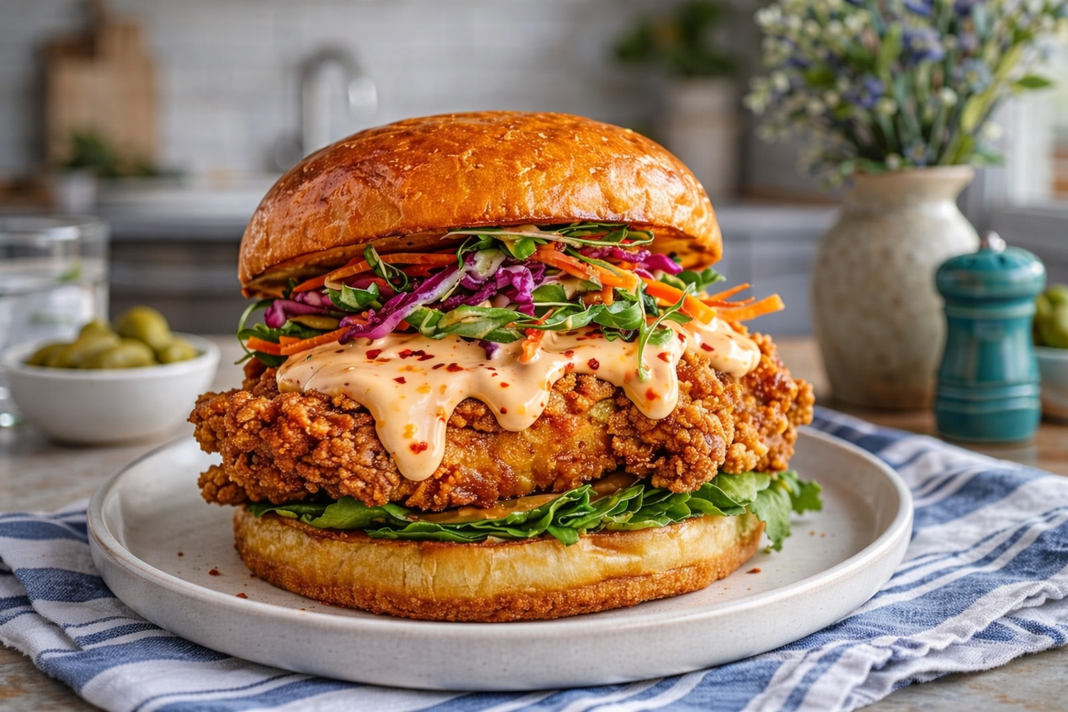 Every bite is crispy, creamy, spicy, herby, and just messy enough to feel exciting. It’s bold, vibrant, and absolutely not your average chicken sandwich.